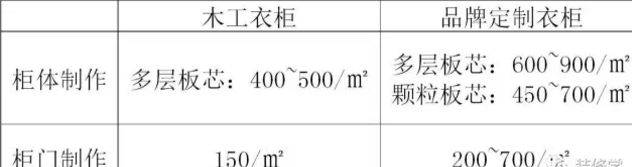 品牌定制柜体:¥600~900/㎡(多层板芯)